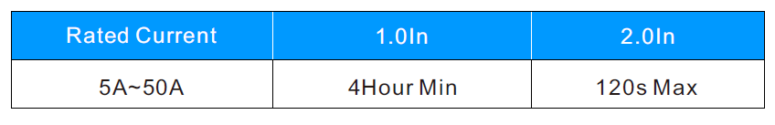 預期飛弧/熔斷時間,電流特性:當保險絲通以下述規定電流時,熔斷時間必須符合表格要求,熔斷后管體不應破裂,端蓋不應脫落。