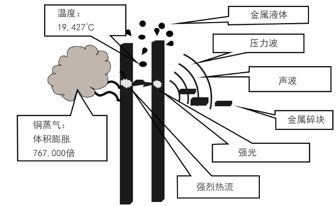圖1-1銅排之間產生的電弧及其效應